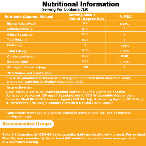 Product Overview: Ashwagandha KSM-66 is a high-concentration, full-spectrum extract derived from the root of the Ashwagandha plant. This supplement is known for its exceptional quality and efficacy in supporting stress reduction, enhancing stamina, and improving overall vitality. KSM-66 is one of the most clinically studied forms of Ashwagandha, standardized to contain the highest concentration of all major root-only extracts available on the market.