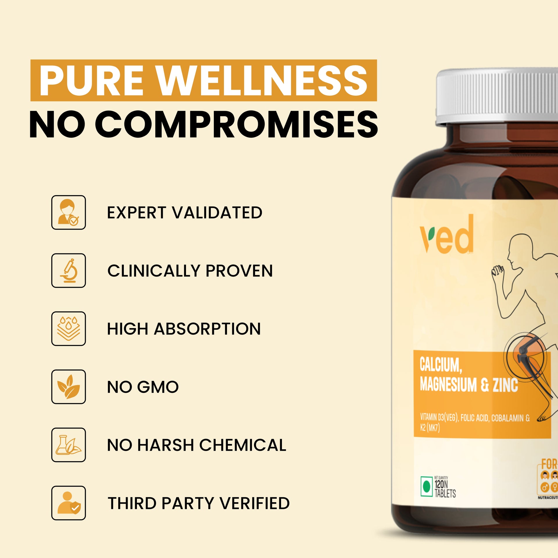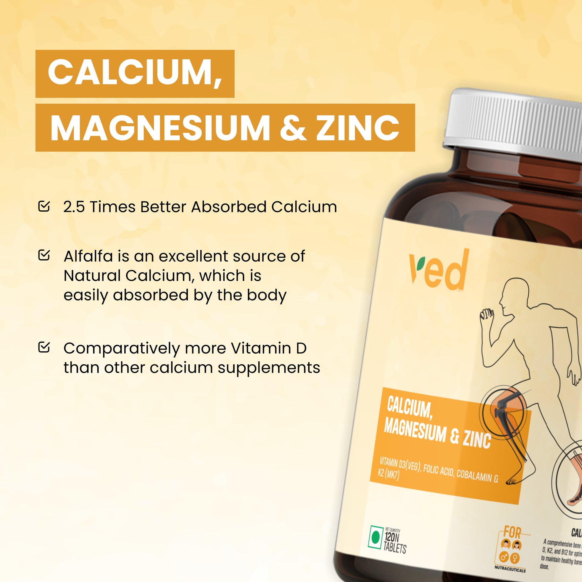 Our all-in-one mineral and vitamin supplement is meticulously designed to support bone health, cardiovascular wellness, and immune system strength. It combines essential minerals—Calcium, Magnesium, and Zinc—with crucial vitamins like Vitamin B3, Folic Acid, Cobalamin (Vitamin B12), and Vitamin K2 (MK7). This powerful blend ensures a balanced approach to supplementing key nutrients needed for overall health and vitality.
