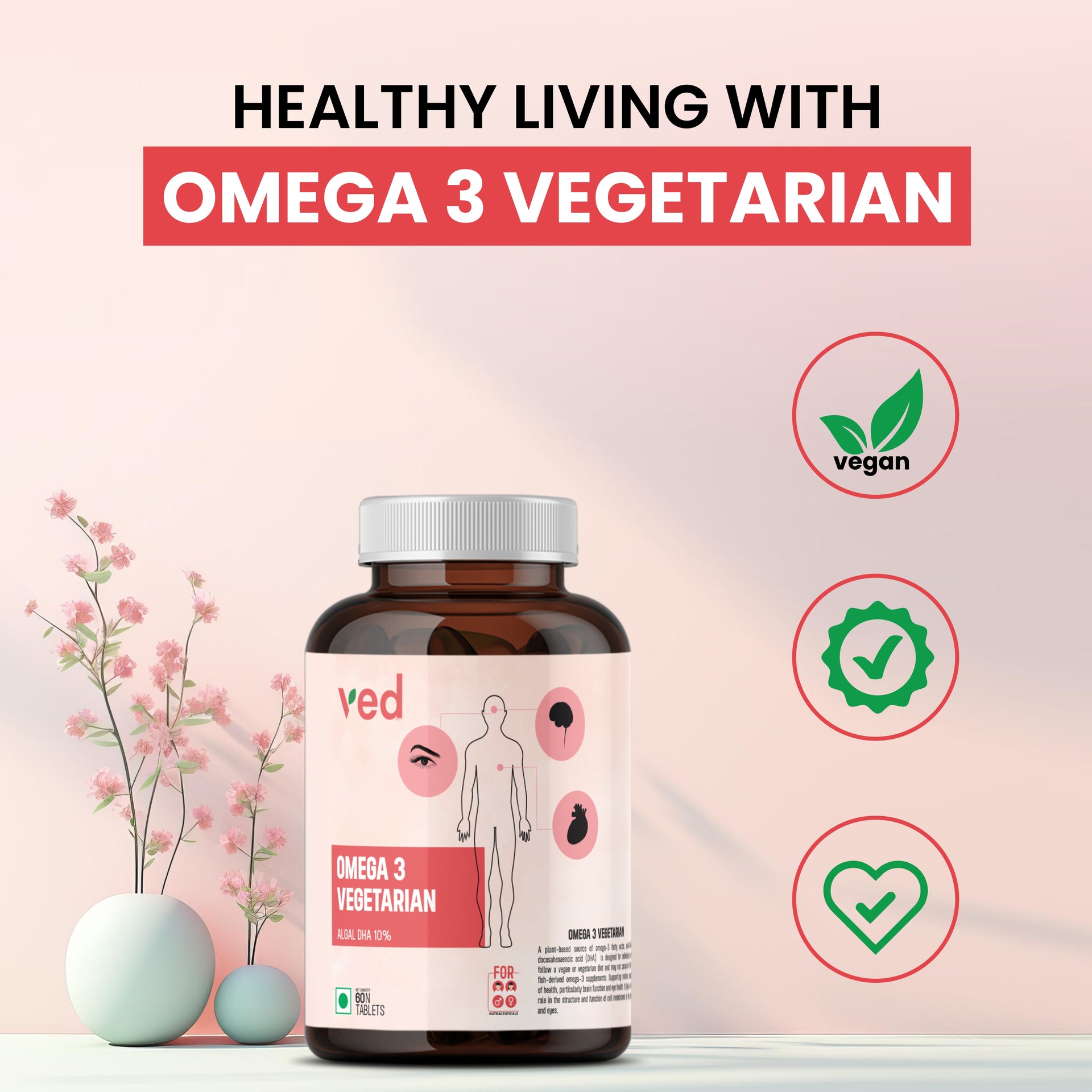 Our Omega 3 Vegetarian supplement offers a plant-based source of DHA, derived from algae, providing a sustainable and effective alternative to fish oil. This supplement is specifically formulated for vegetarians and vegans who are looking for a source of high-quality omega-3 fatty acids. With 10% DHA, it supports brain, heart, and eye health without the use of any animal-derived ingredients.